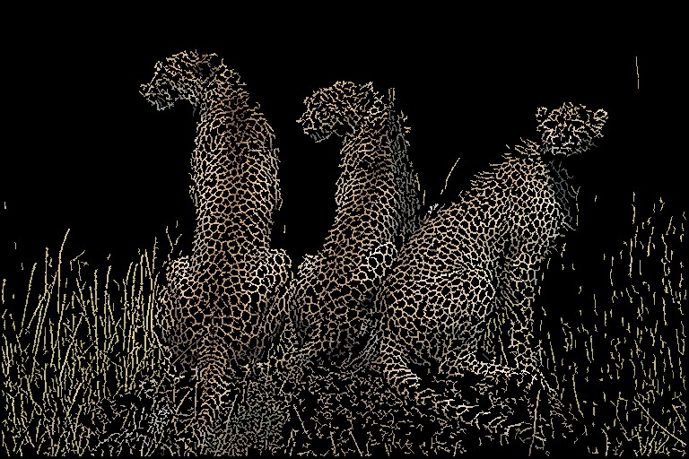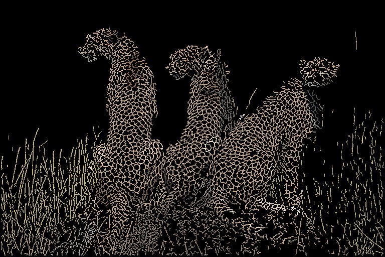 - Colour edge detection. A full 3 colour Canny type edge detector is used here to avoid the case where there is no brightness change across a colour boundary.