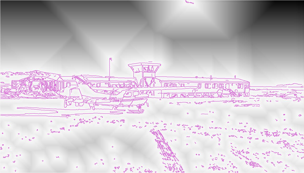 - Distance transform of the edge image. The peaks in the distance transform are used as seed points for region growing. This transformation is also referred to as a Voronoi transform.