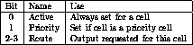 In common with many other designs the fabric elements are self routeing, that is each cell has routeing tags prepended to it which indicate the requested output (at each stage) for that cell; two bits of routeing information and one priority bit are used. The arbitration units in the switch elements implement round robin like service - the winning input in each frame is remembered in the arbitration unit and if contention is experienced for the next cell, the ``next'' requesting input wins (``next'' in the obvious modulo 4 manner). The format of the routeing tag is given in figure 1.