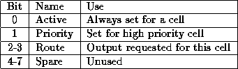 The switch fabric is a cell synchronous, crossbar switch. It is self routeing, that is, the cells have prepended to them routeing tags which tell the fabric which output the cell should be sent to (see figure 1). The routeing tags also contain priority information (in fact a single bit is used) which is examined when two cells contend for the same output. This tag is stripped off before the cell reaches the output stage.