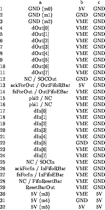 The B row is VME (J2) compatible. (Ribbon connectors will not pickup row B.)