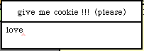 answer := FillInTheBlank request:'Give me cookie !!! (please)'.