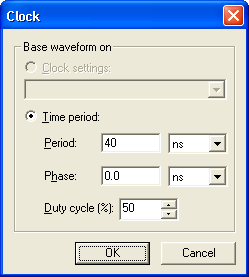 to open the Clock dialog. Enter a period of 40ns, duty cycle 50% like this: