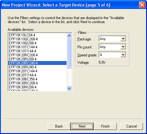 4 (you must choose this first) Device: EPF10K20RC240-4 |