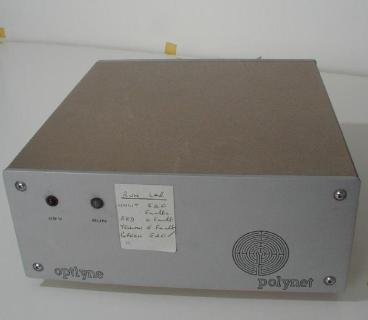Inscription: "optlyne" and "polynet" with logo on front. "OPTLYNE D UNIT" "TYPE 225-02-0001-001" "Ser.No. 17771/13" "Logica VTS Ltd 64 Newman Streey London W1A 4SE England" "Manufactured for Logica VTS Ltd by DAC Ltd Burton-on-Trent Staffs England" all on label on back.