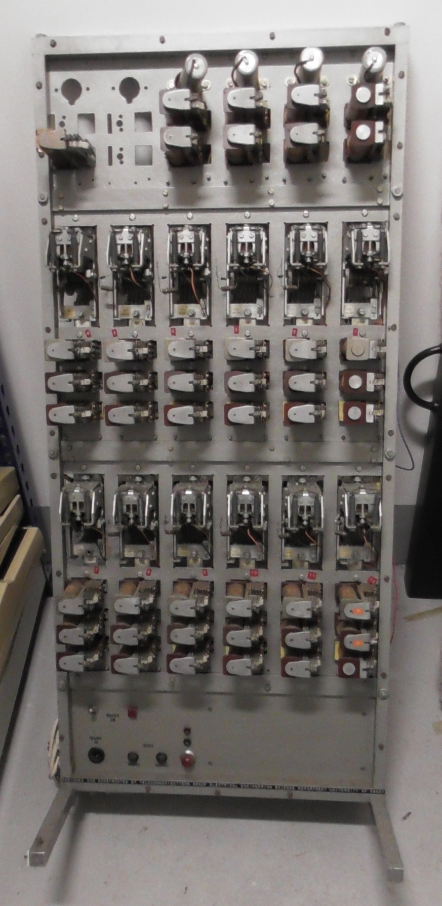 Brief description: Steel chassis containing relays, uniselectors and a power supply that is clearly a programmable circuit switching matrix.