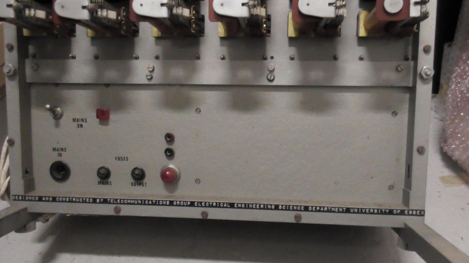 Markings: Dymo tape: 'Designed and constructed by Telecommunications Group Electrical Engineering Science Department University of Essex'.