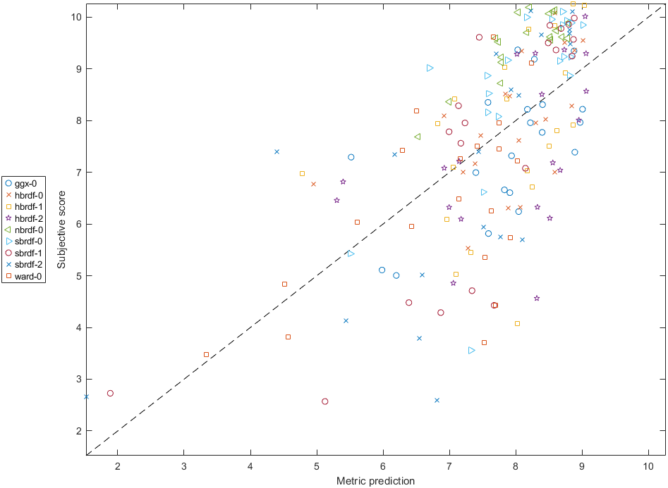 Detailed report for metric "AHIQ" on BRDF-Quality dataset