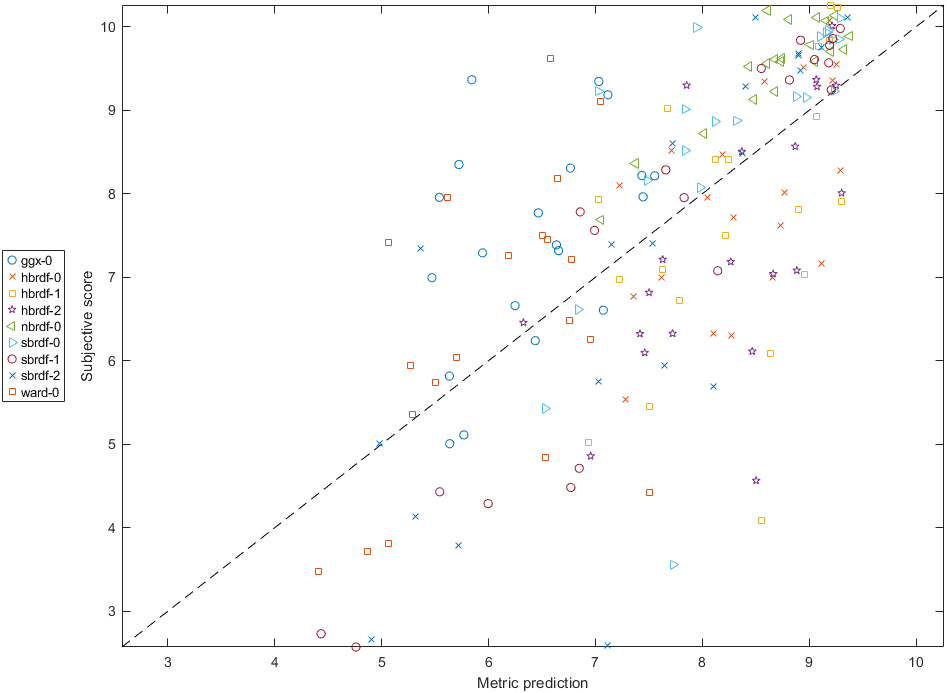 Detailed report for metric "HDR-VDP-3 (v3.0.7)" on BRDF-Quality dataset