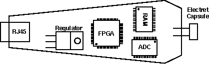 OverviewThis electronic microphone contains an integral ADC convertor and ATM line interface. When power is applied, a continuous stream of audio cells is generated. |
