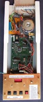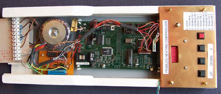 As you can see, this code will become a bit shorter when we have implemented arrays in the pushlogic! The pebble statement can be used at the start of the script (or in a separate file) to redirect field references. Therefore, with the following addition, the Pushlogic program can be hosted on a remote platform, yet still interact with the heating unit's physical I/O devices. pebble Heating = "tup:/12.323.44.23/devices/Heating"; pebble Display = "tup:/12.323.44.23/devices/Display"; pebble Keypad = "tup:/12.323.44.23/devices/Keypad"; pebble Timer = $$/Timer; This all works today and can be demonstrated in FN12. Security Light FunctionThe device serves another separate function. It has an additional fused 240V AC switched output that is intended to control a security light. This can be controlled by a separate program, either loaded over the network and hosted on the local Pushlogic execution platform or executed remotely. The application that controls it simulates occupancy of the home. 2016 DecommissionedTen years have passed. Here it is, just before removal, installed in the cupboard under the stairs in a house. In 2016 this unit was taken out of service since commercial Internet-connected devices like Hive Nest and HeatMiser Neo are now available to replace it. These too are UPnP devices in that they use DHCP but they do not publish their API to enable home automation applications. |