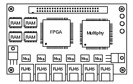 The Warren switch has 6 ports, and no processor. i.e. Its functions are implemented entirely in hardware. VCI remapping and VCI to route mapping are setup by sending special 'PEEK' and 'POKE' cells to the switch which cause read and write operations on the switch SRAM.