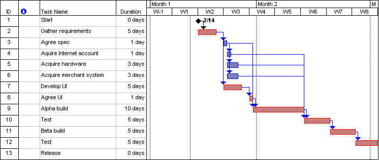 (a) Draw up a project plan, illustrated by a GANNT chart and indicate the critical path. [5 marks]