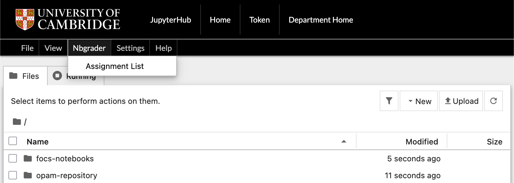 Ticks are conducted via the interactive FoCS notebook site. When you first log in there, you will see a menu item named 'Nbgrader'