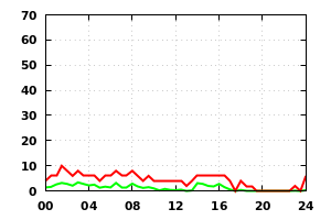 Wind Speed (red=max, green=mean knots)