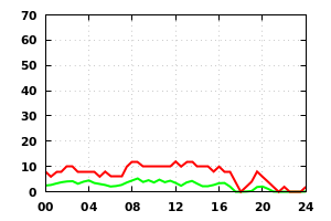 Wind Speed (red=max, green=mean knots)