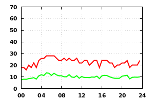 Wind Speed (red=max, green=mean knots)