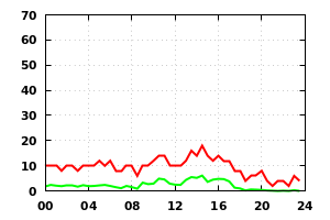 Wind Speed (red=max, green=mean knots)