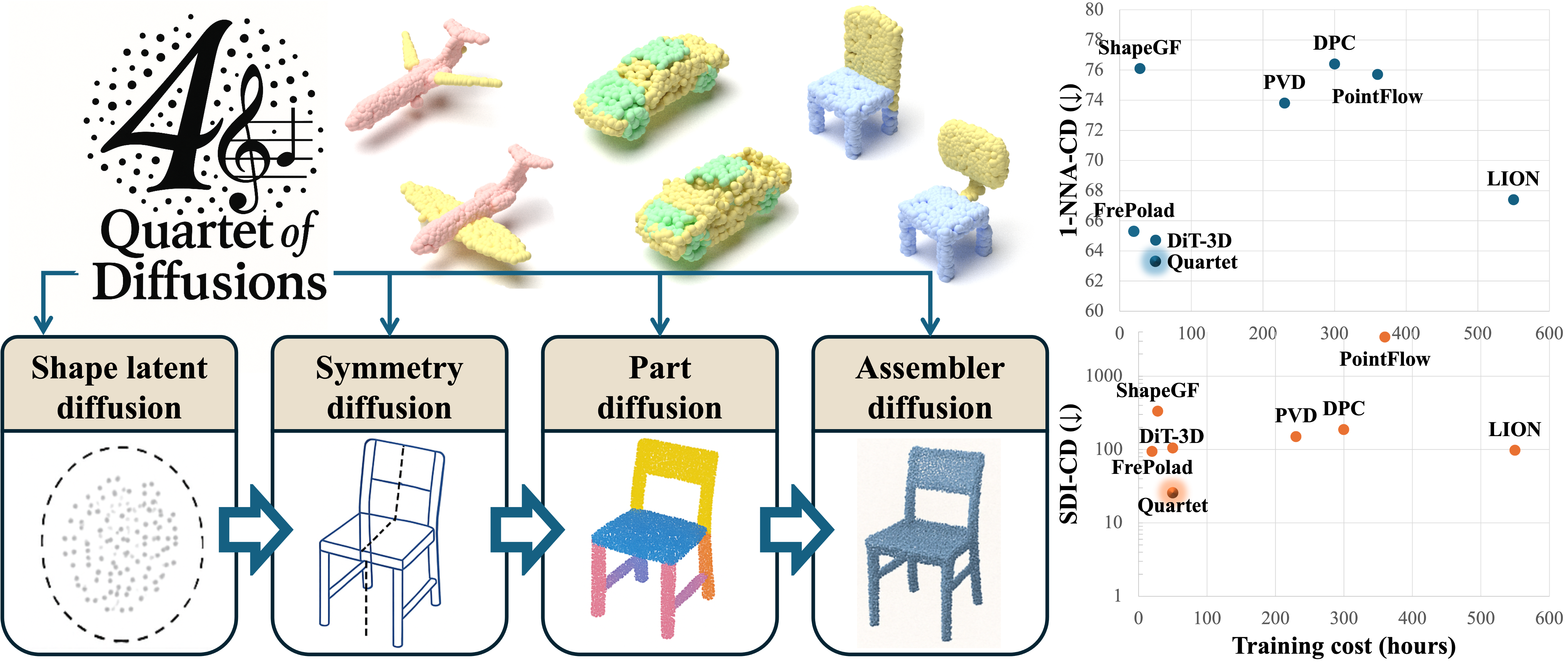 Quartet of Diffusions: Structure-Aware Point Cloud Generation through Part and Symmetry Guidance